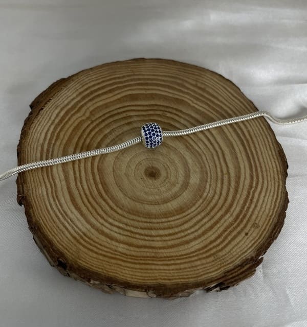Joias Em Prata 925, Garantia Vitalícia... O preço original era: R$ 140,00.R$ 70,00O preço atual é: R$ 70,00.Berloque Modelo Separador Cravejado Com Pedras Azuis