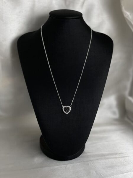 Joias Em prata 925, Garantia Vitalícia... O preço original era: R$ 140,00.R$ 70,00O preço atual é: R$ 70,00.Colar Modelo Elo Longo Com Pingente Coração Cravejado Pedras Rosas
