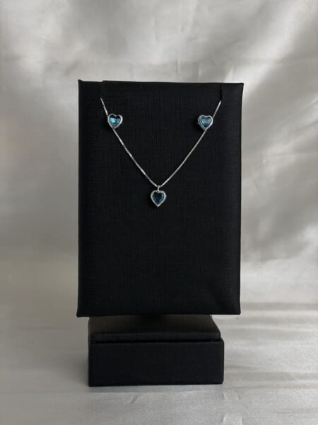 Joias Em Prata 925, Garantia Vitalícia. O preço original era: R$ 190,00.R$ 95,00O preço atual é: R$ 95,00.Colar Modelo Veneziano Com Pingente Pares De Brincos Coração Azul Claro
