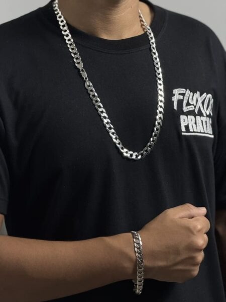Joias Em Prata 925, Garantia Vitalícia... O preço original era: R$ 260,00.R$ 130,00O preço atual é: R$ 130,00.Conjunto 10mm Corrente 60cm Pulseira 1×1 Grumet