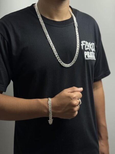 Joias Em Prata 925, Garantia Vitalícia... O preço original era: R$ 1.600,00.R$ 1.400,00O preço atual é: R$ 1.400,00.Conjunto 13mm Corrente 70cm Pulseira 21cm 1×1 Grumete