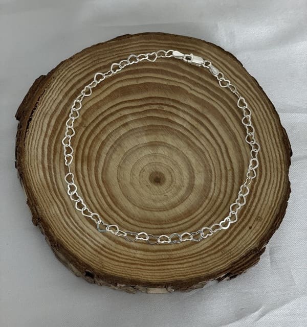Joias Em Prata 925, Garantia Vitalícia... O preço original era: R$ 80,00.R$ 50,00O preço atual é: R$ 50,00.Tornozeleira Feminina Modelo Corações vazados