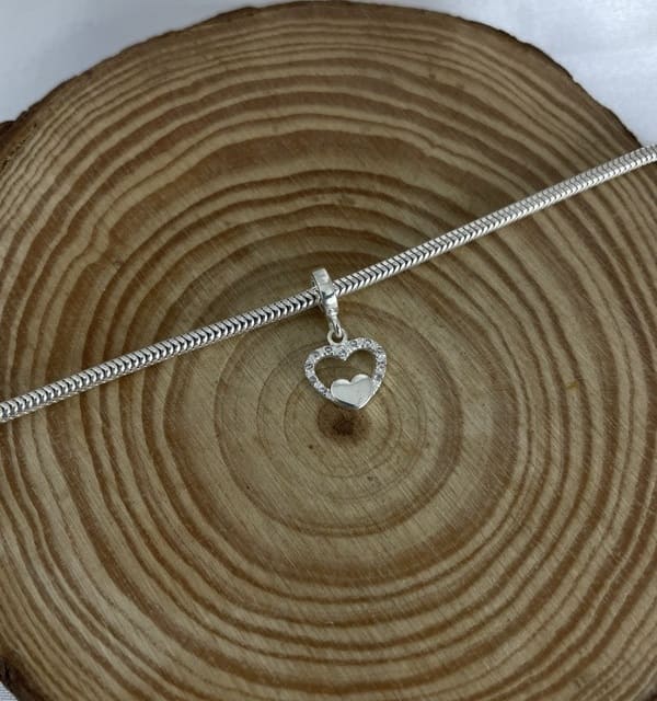Joias Em prata 925, Garantia Vitalícia... O preço original era: R$ 140,00.R$ 70,00O preço atual é: R$ 70,00.Berloque Modelo Coração Cravejado